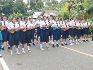 Wakil Bupati Bersama istri Berjalan Dari ujung Dusun Kusu-Kusu Melintas Dan ketika sampai juga di depan skolah SD Negeri 2 Kamarian Di sambut juga dengan Tarian Sajojo Dari anak-anak Skolah Dasar dengan pakian Terbuat dari Bahan bekas sampai yang unik Dan pengalungan juga Syiyal dan Pemberian Bunga Tangan kepada istri dari Wakil Bupati